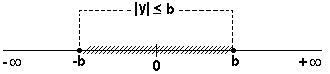 Vamos utilizar a interpretação geométrica do módulo vista acima, para resolver as desigualdades ou inequações modulares.Inequações do tipo |y| £ b, com b > 0.