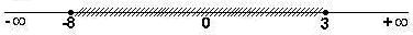 Observe que no conjunto R dos números reais, o conjunto solução da inequação dada é um conjunto infinito formado por todos os números reais a partir de - 8 até +3.