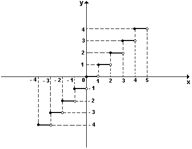 Resp: 07 - Elabore o gráfico da função y = [x] , de domínio R, onde [x] significa o maior inteiro contido em x, assim definido: