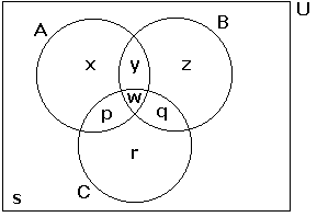 Veja a figura a seguir, onde x, y, z, w, p, q, r e s representam número de elementos: