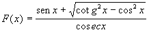 Sugestão: Simplifique o segundo membro da função F(x) usando relações da Trigonometria. Você encontrará F(x) = 1, para todo valor de x do domínio da Função F(x).Gabarito:
