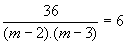 6(m-2)(m-3) = 36 \ (m-2)(m-3) = 6 \ m2 5m + 6 6 = 0