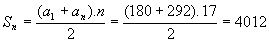 Considerando-se esta nova PA de primeiro termo 180 e último termo 292, aplicando a fórmula da soma dos termos , teremos: