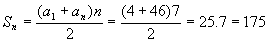 Dada uma progressão aritmética cujo primeiro termo é 4 e o último é 46 e sabendo-se que a razão é igual ao número de termos, calcular a soma dos termos.Solução:
