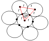 Observe que, sendo os círculos tangentes dois a dois, o triângulo da figura é eqüilátero de lado 2r. Sabemos que os ângulos internos de um triângulo eqüilátero são iguais a 60º.