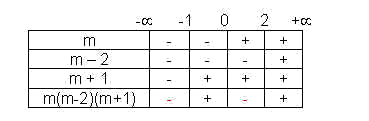 Teremos então que resolver a inequação m(m 2 )(m +1) < 0.
