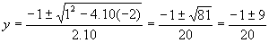 Portanto y = (-1 + 9)/20 ou y = (-1