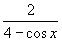 A fração dada terá valor máximo, quando o denominador tiver valor mínimo. Portanto, deveremos ter cosx = 1(máximo valor do coseno), para que a diferença 4-cosx seja mínima. Substituindo, vem: 2/(4-1) = 2/3, o que nos leva à alternativa (02).