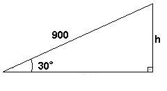 Teremos: sen 30º = h / 900 \ h = 900 . sen30º = 900.1/2 = 450m