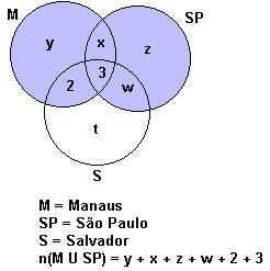 Observe que n(M U SP) representa o conjunto dos estudantes que visitaram Manaus OU São Paulo, conforme foi solicitado no problema.
