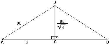 Sabendo-se que C é o ponto médio de AB, cujo comprimento vale 12 metros, pede-se determinar o comprimento de DE na figura abaixo.