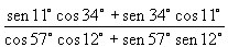 sen(11º + 34º) / cos(57º-12º) = sen45º / cos45º . Mas, sen45º = cos45º = Ö 2/2.