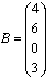 B é uma matriz de quatro linhas e uma coluna, portanto de ordem 4 x 1.