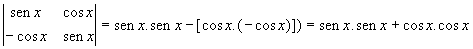 Ora, senx.senx + cosx.cosx = sen2x + cos2x = 1 ( Relação Fundamental da Trigonometria ) . Portanto, o determinante da matriz dada é igual à unidade.