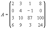 Assim , por exemplo , na matriz X do exemplo anterior , temos a23 = 2 , a31 = 4 , a33 = 3 , a3,2 = 5 , etc.