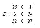Observe que a 2ª coluna é composta por zeros; FILA NULA Þ DETERMINANTE NULO , conforme propriedade P3 acima. Logo, D = 0.