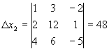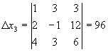 x3 = D x3 / D = 96 / 24 = 4Logo, o conjunto solução do sistema dado é S = { (5, 2, 4) }.