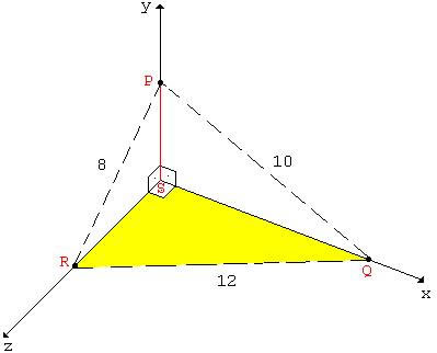 No caso, a altura é h = PS e a base é o triângulo retângulo RSQ, com o ângulo reto em S.