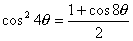 Determine a área da rosácea de 8 pétalas, cuja equação polar é r = a.cos4q.