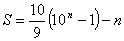 S = (10 – 1) + (100 – 1) + (1000 – 1) + (10000 – 1) + ... + (10n –1)