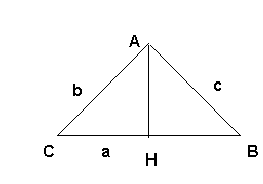 Medidas dos lados: AC = b, AB = c e CB = a.