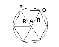 Exemplo 2: Determine o comprimento do lado de um hexágono regular inscrito num círculo de raio R.