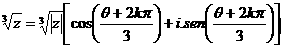 A fórmula para o cálculo das raizes cúbicas de um número complexo é dada por