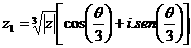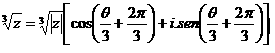 onde, para cada valor de k, obteremos uma das 3 raízes cúbicas existentes.