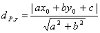 Já sabemos que a distância de um ponto P(x0 , y0)  à uma reta r de equação ax + by + c = 0, é dada pela fórmula: