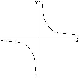 Veja a seguir, exemplo de gráfico da hipérbole equilátera x.y = k, com k > 0, onde os eixos coordenados Ox e Oy são as assíntotas.
