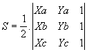 Seja o triângulo ABC de vértices A(xa , ya) , B(xb , xc) e C(xc , yc) . A área S desse triângulo é dada por