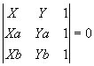 (Ya - Yb) . x + (Xa - Xb) . y + (XaYb - XbYa) = 0 .Fazendo Ya - Yb = a , Xa - Xb = b e XaYb - XbYa = c , decorre que todo ponto P(x,y) pertencente à reta , deve verificar a equação :