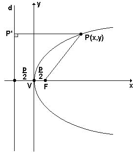 y2 = 2px onde p é a medida do parâmetro da parábola.