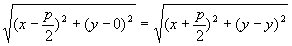 Observando a figura acima, consideremos os pontos: F(p/2, 0) - foco da parábola, e P(x,y) - um ponto qualquer da parábola. Considerando-se a definição acima, deveremos ter: PF = PP'