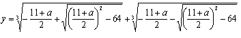 Ora, temos agora uma equação do tipo y3 + py + q = 0 onde  p = - 12 e q = 11 + a.