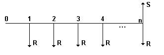 Vamos considerar dois casos: fluxo postecipado e fluxo antecipado.NOTA: na calculadora HP12C, R é expressa pela tecla PMT (pagamentos periódicos). Portanto R e PMT possuem o mesmo sentido, ou seja, a mesma interpretação. Da mesma forma, S corresponde a FV na calculadora HP 12C.