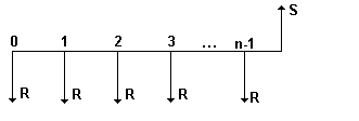 Determinar a quantia S acumulada a partir de uma série uniforme de pagamentos iguais a R, sendo i a taxa de juros por período.